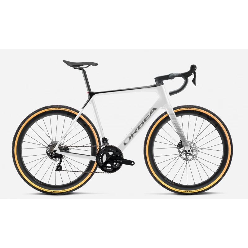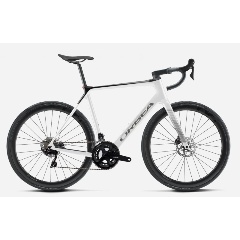Cette version du gain M30 est un peu particulière, en effet elle bénéficie du programme custom de chez Orbea. C’est à dire qu’il s’agit d’un modèle unique avec un coloris Blanc brillant /noir. En prime, il est équipé de pneus Schwalbe One en 700X30. Il est aussi équipé de l’option roues carbon tubeless Orbea (+399€)