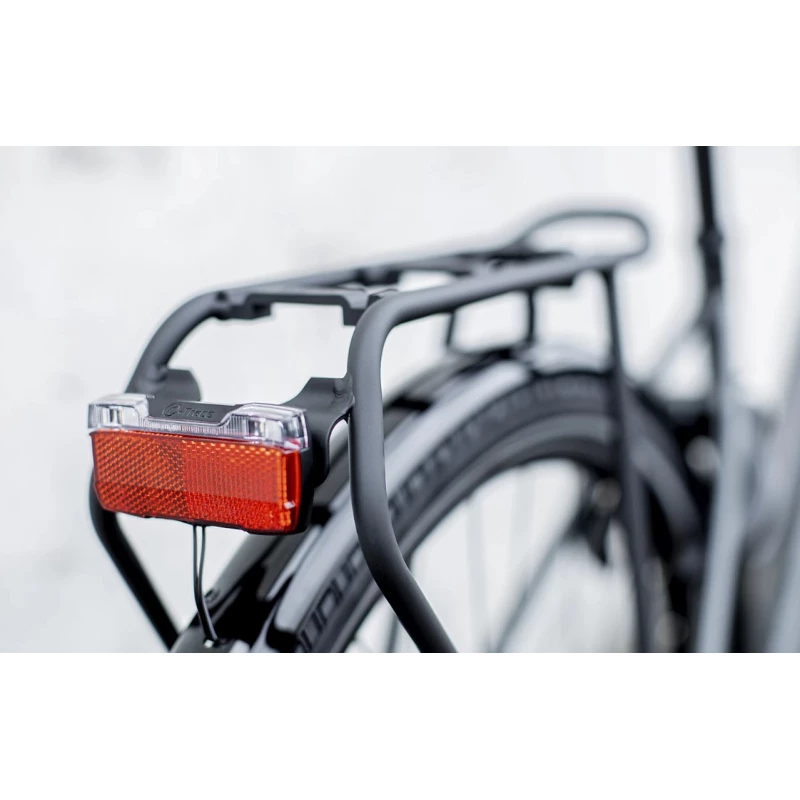 Un cadre en aluminium léger Alpha Smooth avec une géométrie droite confortable, une transmission à courroie Gates CDX avec un moyeu interne 8 vitesses Shimano Alfine et un moyeu avant à dynamo Shimano qui alimente vos feux. Sans oublier, de puissants freins à disque hydrauliques, des garde-boue, des poignées ergonomiques confortables, une potence réglable, un porte-bagage compatible MIK, et des pneus larges et stables avec des flancs de pneu réfléchissants.