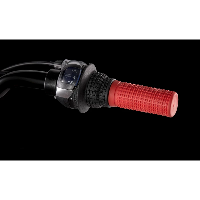 Un cadre léger et solide en aluminium, une transmission simple à 7 vitesses que les enfants dominent aisément et une fourche télescopique pour atténuer les bosses sur la route et le trail. Sans oublier une béquille, des fixations pour un porte-bagages arrière et une selle à poignée intégrée qui peut être remplacée par un support de feu arrière intégré.